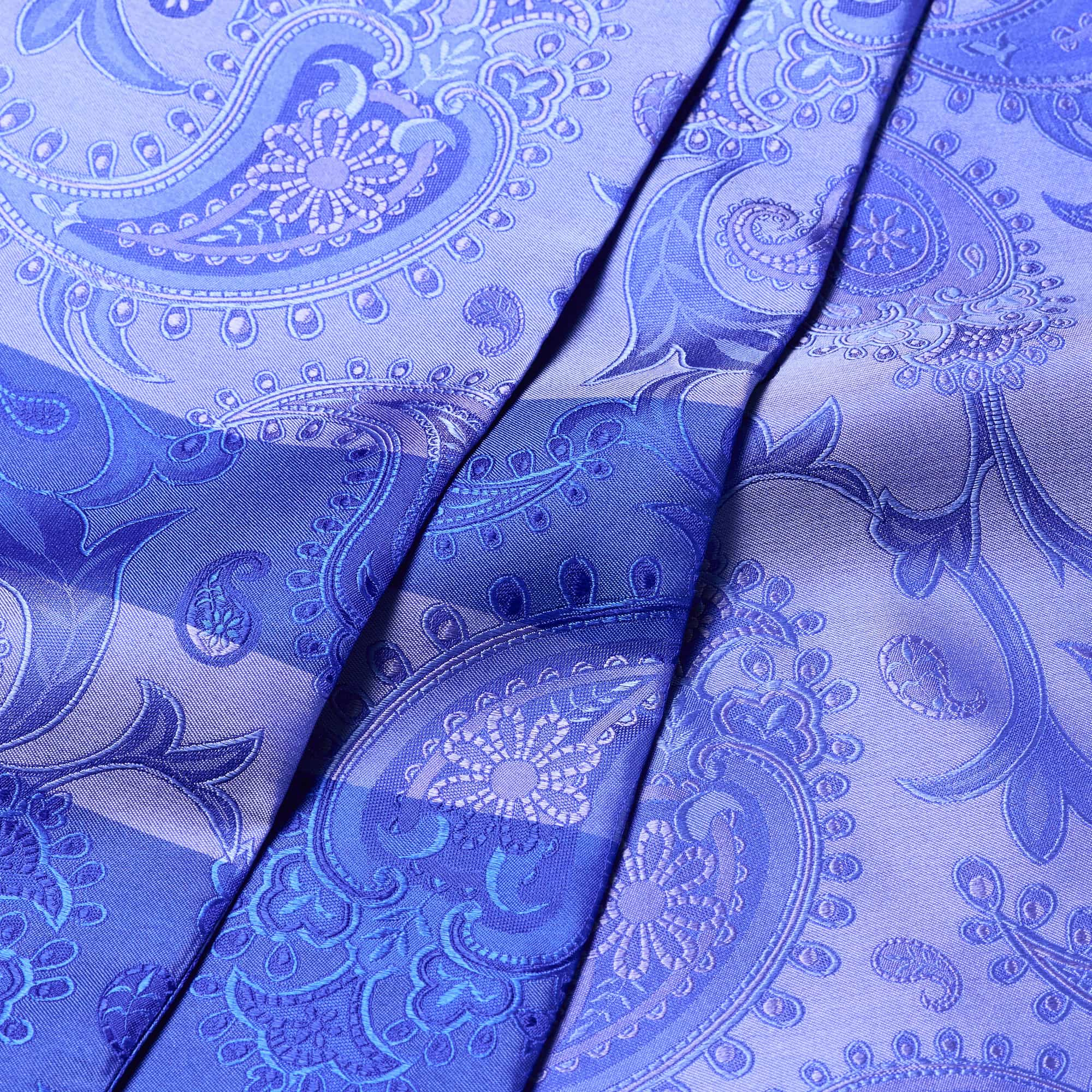 通常黒糸を使う経糸に、あえてブルーの糸を使って生まれた〈ブルー/エレット〉。 見る角度や光の加減で、織物にしか味わえない玉虫色のシックな光沢が楽しめます。 大胆で優雅。華やかで繊細。深まる季節にふさわしいラグジュアリーなお洒落の神髄。田屋のオリジナルマフラー。