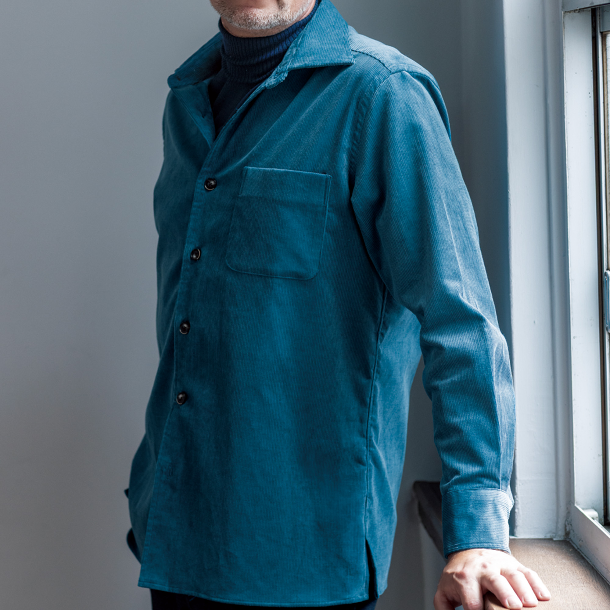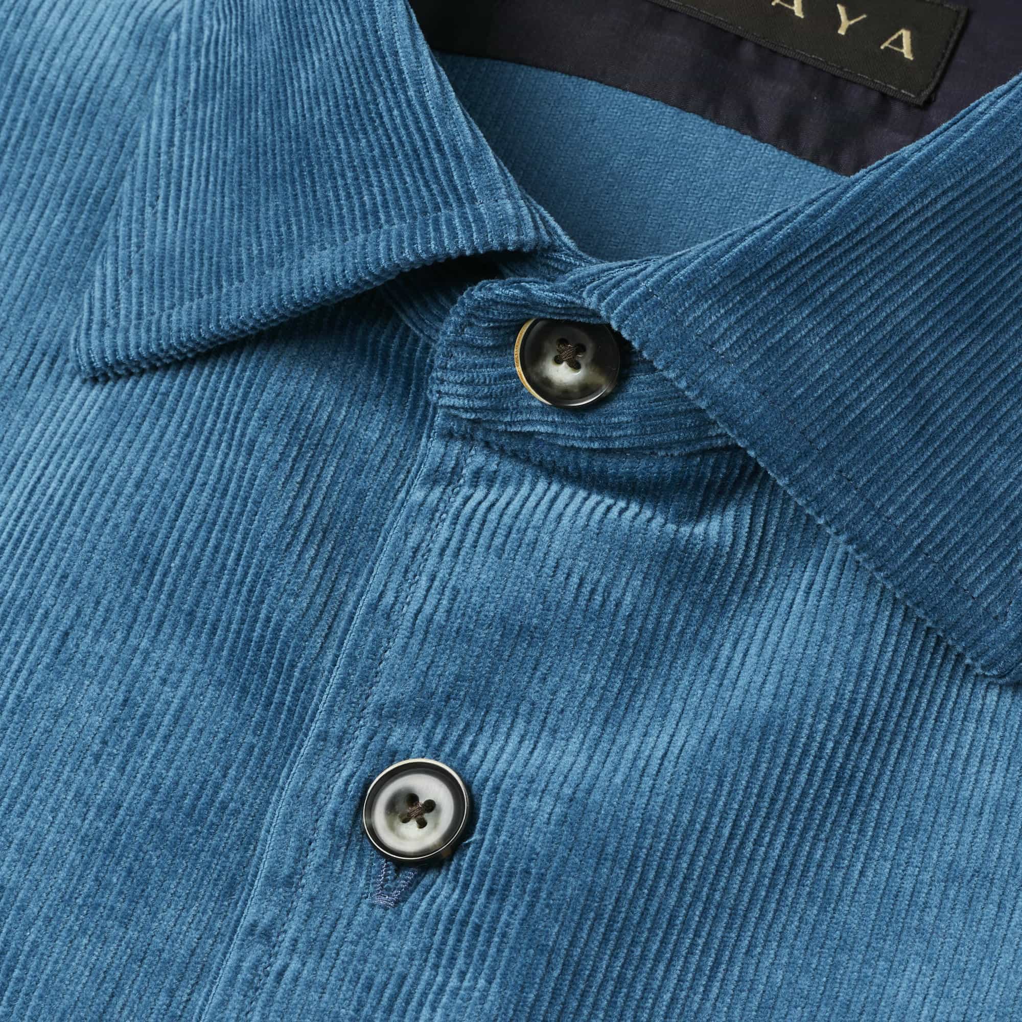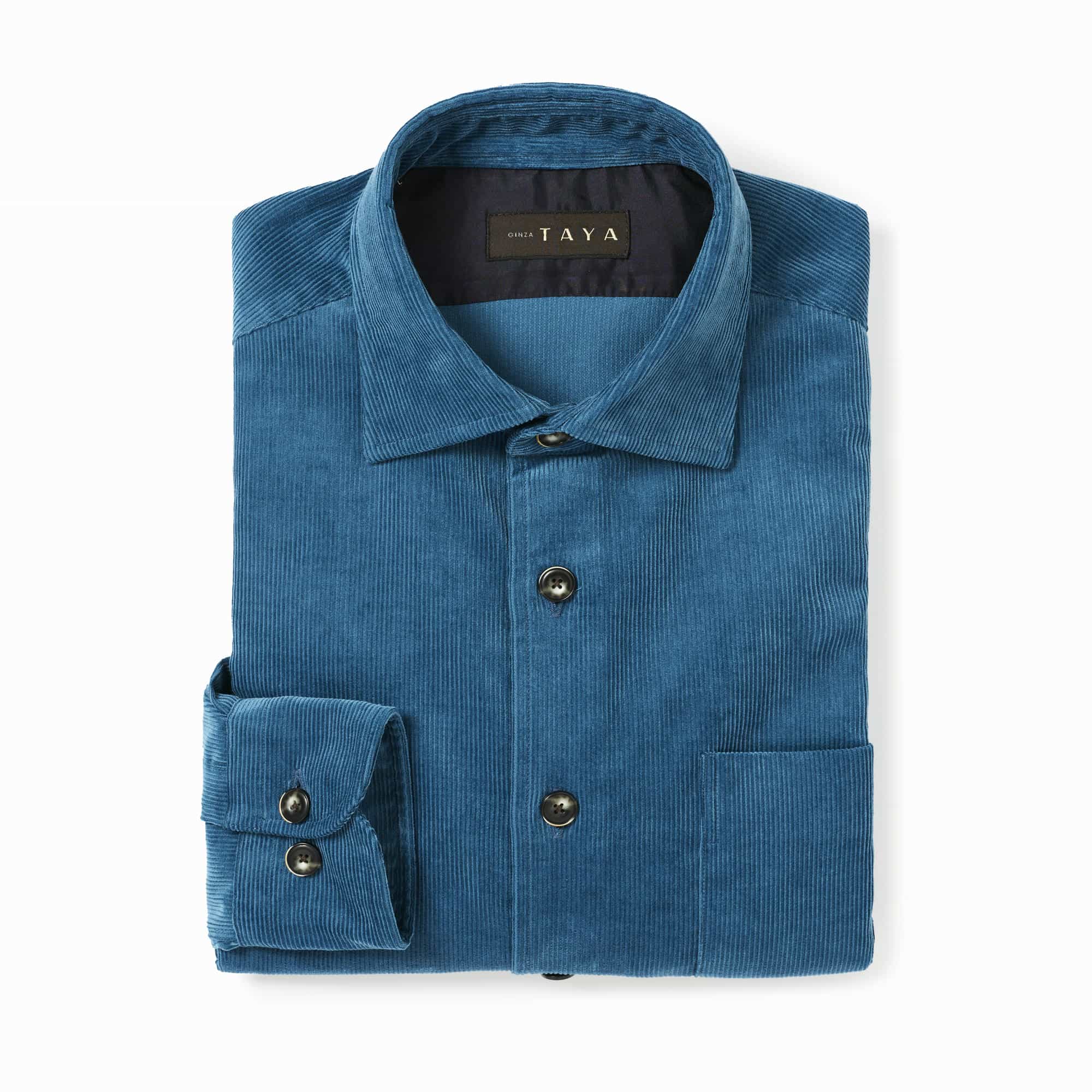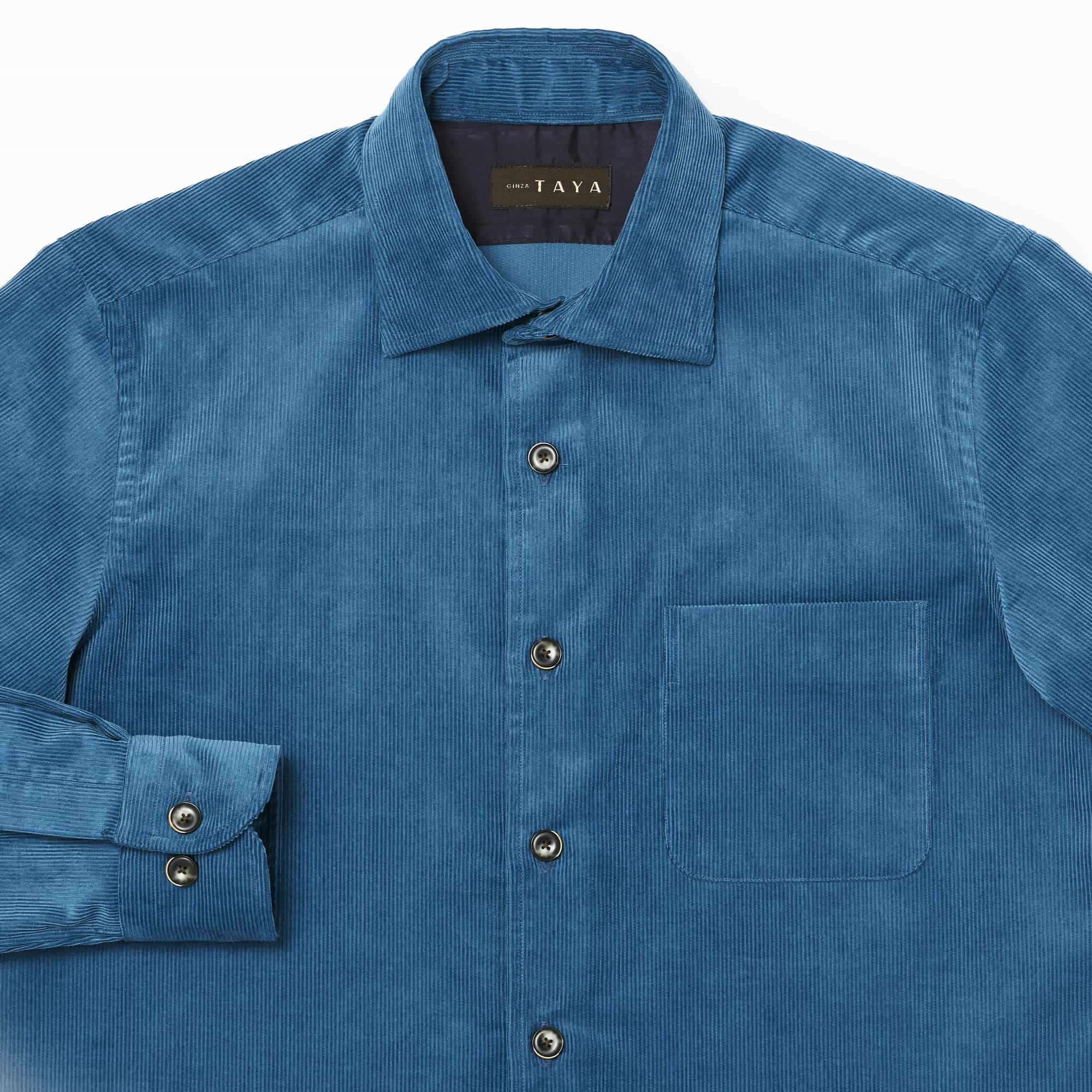 ボタンは、別注の貝ボタンを使用しています。角を削り(面取り)、厚みも2.2mmと、大変掛けやすくなっています。割れにくい天然素材(高瀬貝・黒蝶貝)の貝ボタンは、高級シャツの証しともいえます。