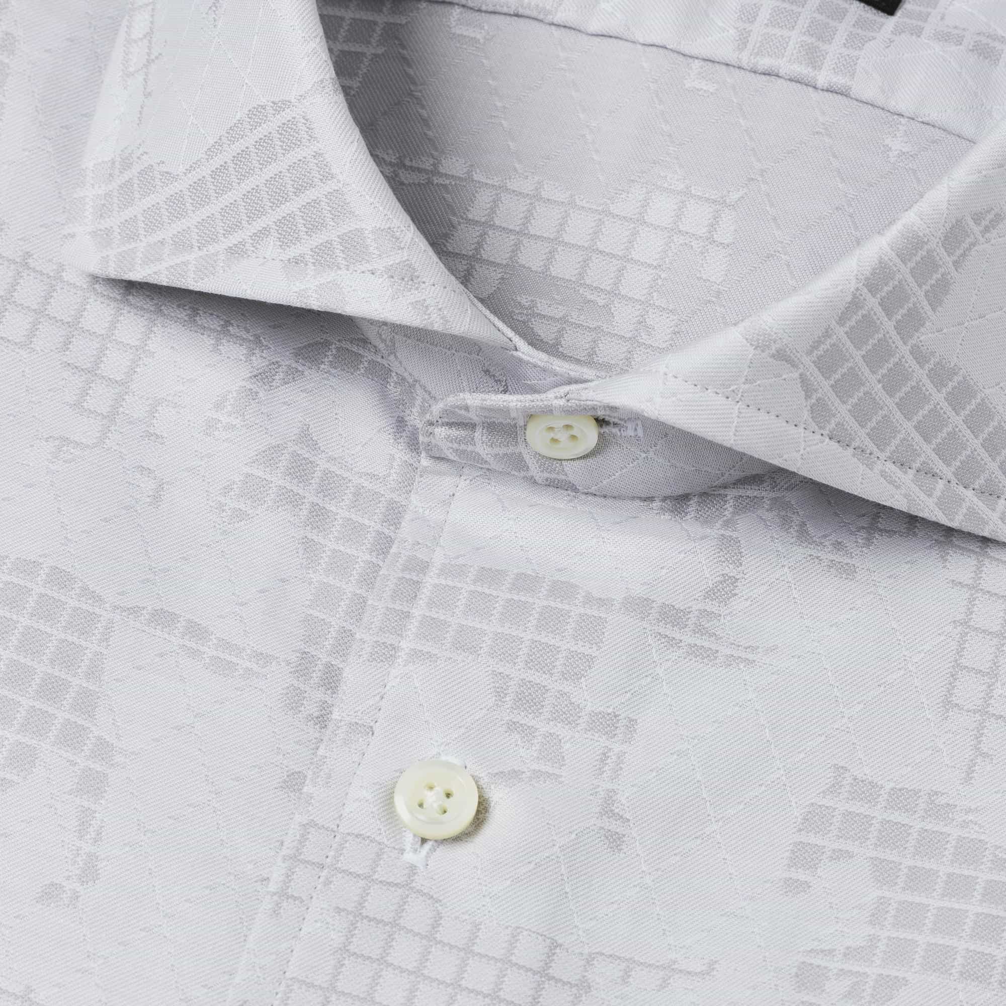 ボタンは、別注の貝ボタンを使用しています。角を削り(面取り)、厚みも2.2mmと、大変掛けやすくなっています。割れにくい天然素材(高瀬貝・黒蝶貝)の貝ボタンは、高級シャツの証しともいえます。