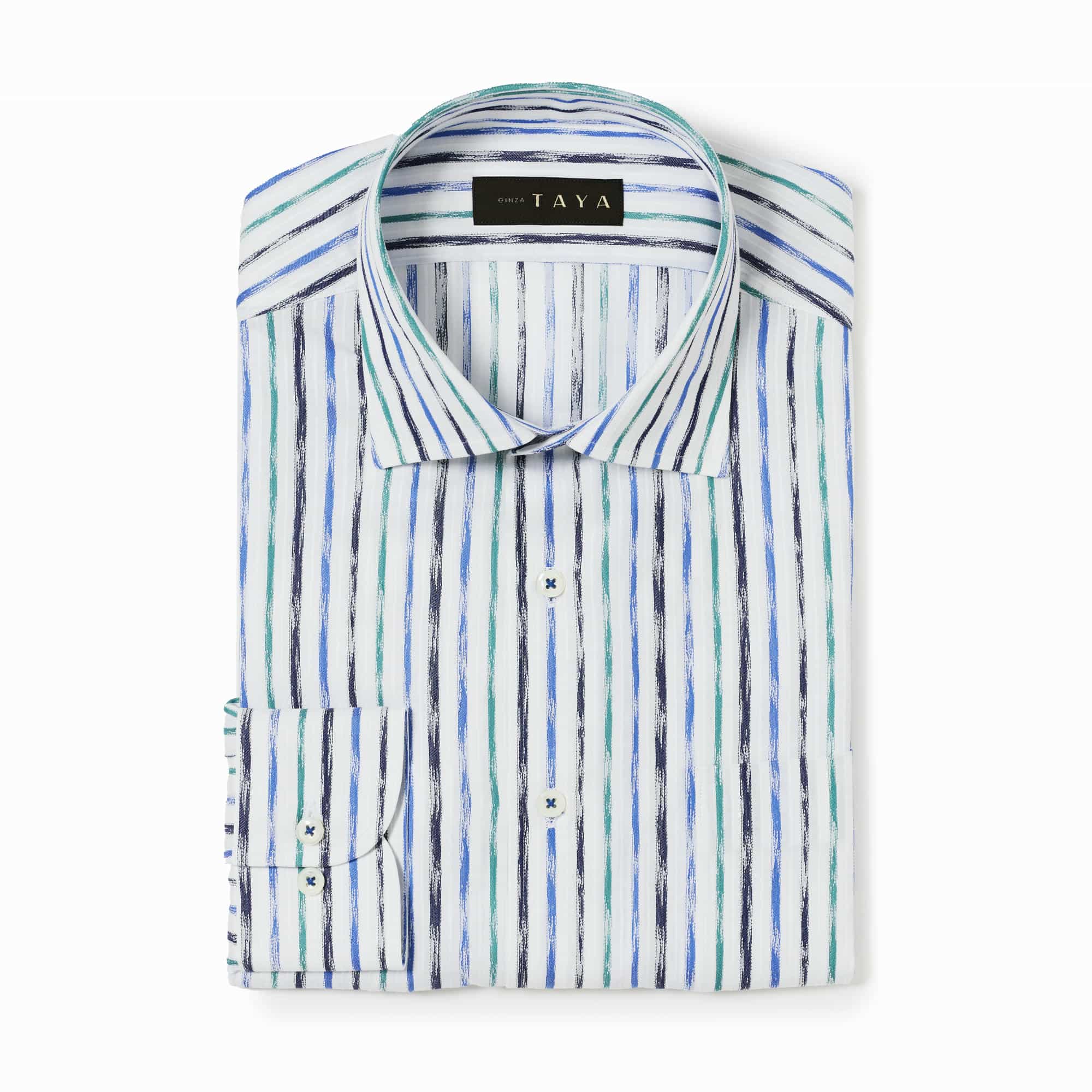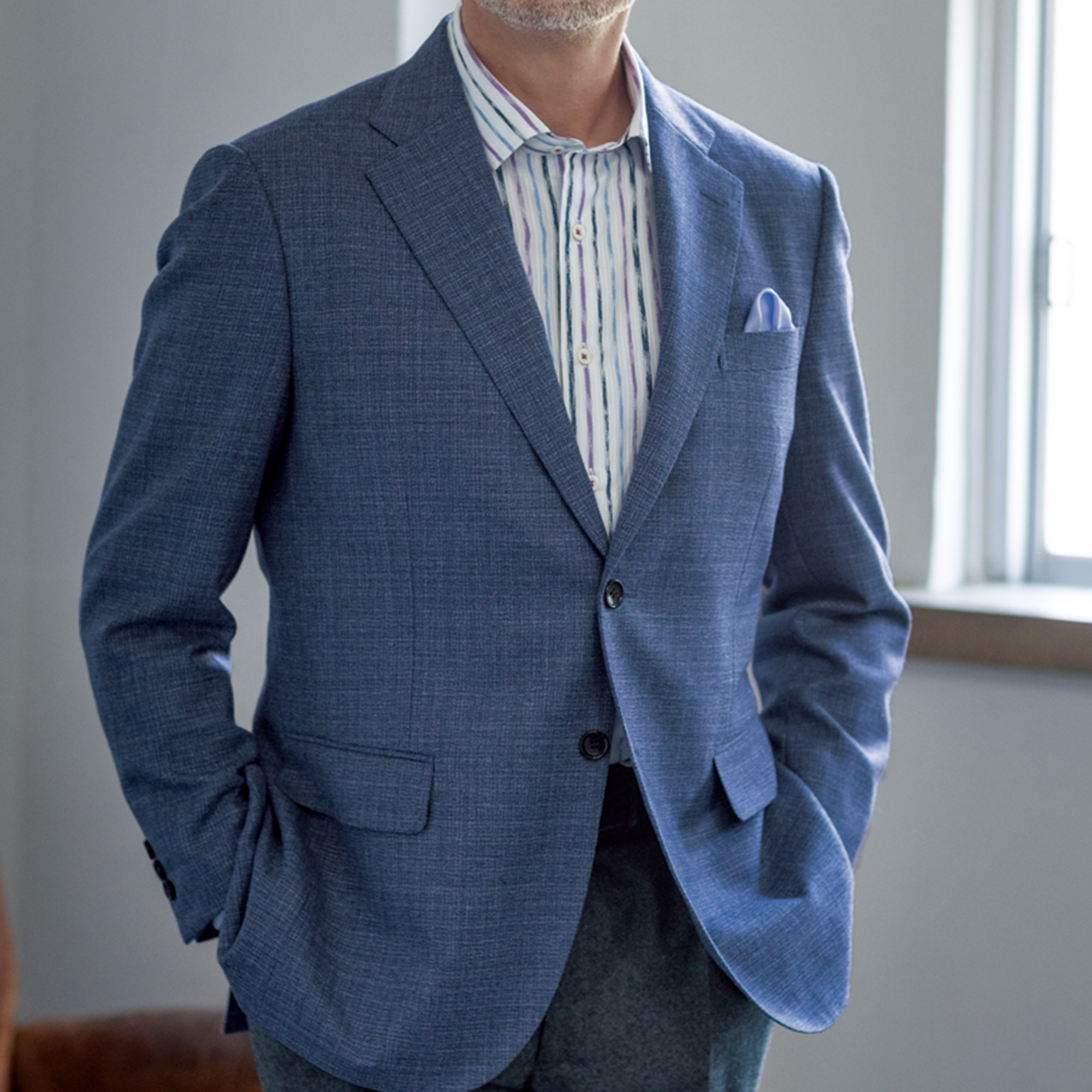 ボタンは、別注の貝ボタンを使用しています。角を削り(面取り)、厚みも2.2mmと、大変掛けやすくなっています。割れにくい天然素材(高瀬貝・黒蝶貝)の貝ボタンは、高級シャツの証しともいえます。