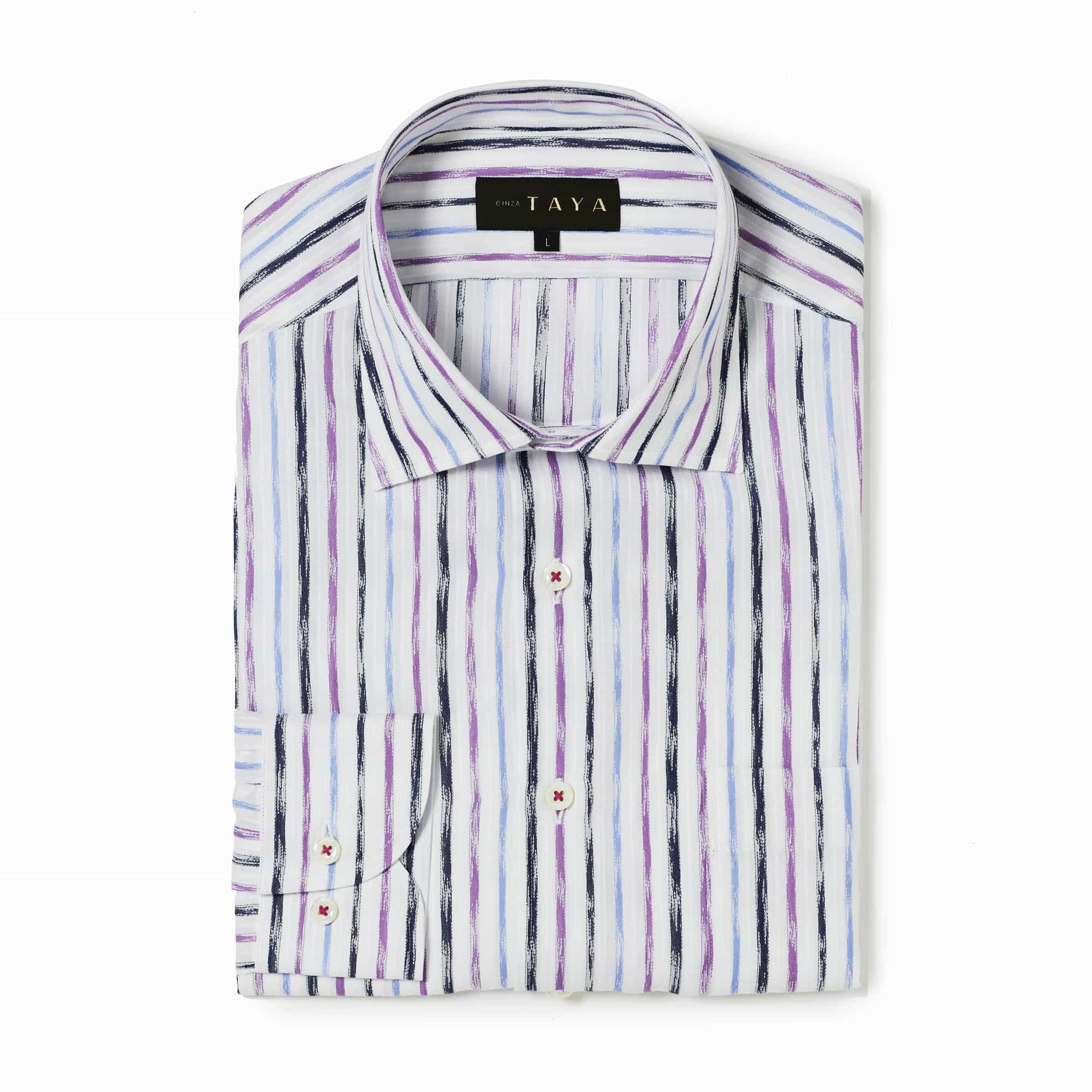 ボタンは、別注の貝ボタンを使用しています。角を削り(面取り)、厚みも2.2mmと、大変掛けやすくなっています。割れにくい天然素材(高瀬貝・黒蝶貝)の貝ボタンは、高級シャツの証しともいえます。