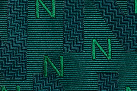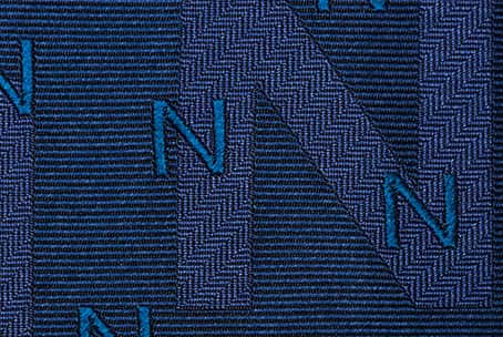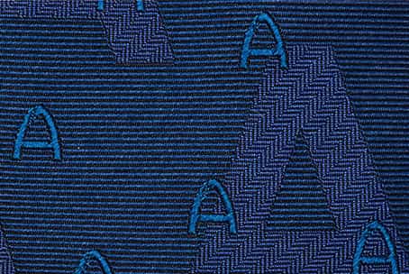 あえて同系色の糸を使用し、織りの組織だけで浮かび上がる文字を表現。計算されたフォントの大小の組み合わせが、控えめながらも確かな個性を放つ一本です。
