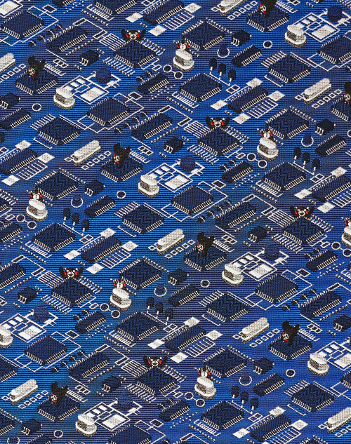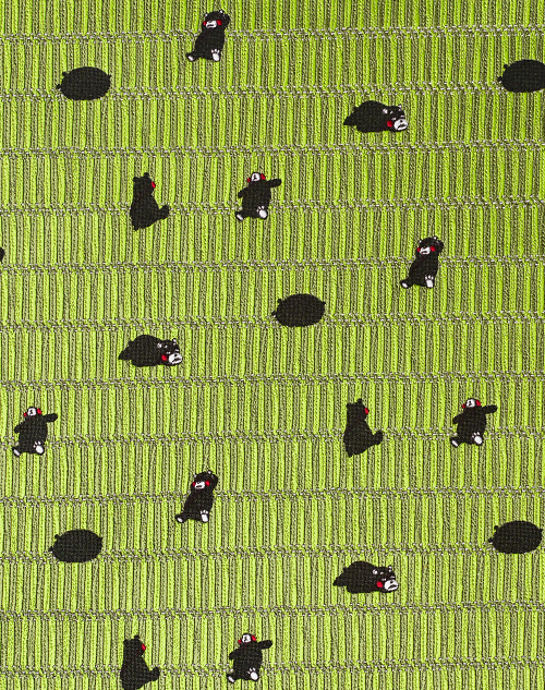 今や世界に欠かせない半導体。そのチップを絵柄に織り込みました。迷路のような基盤に現れたくまモンは、新たなエネルギー。新生シリコンアイランド九州の中心・熊本にエールを送ります。